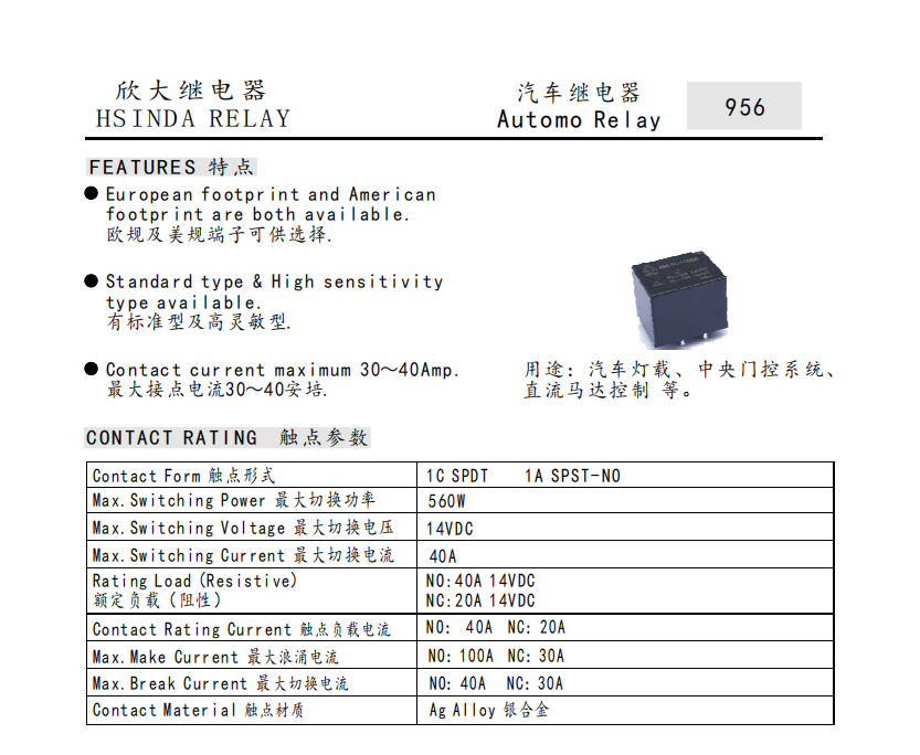 汽车继电器 956